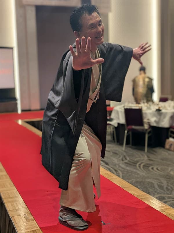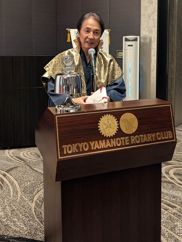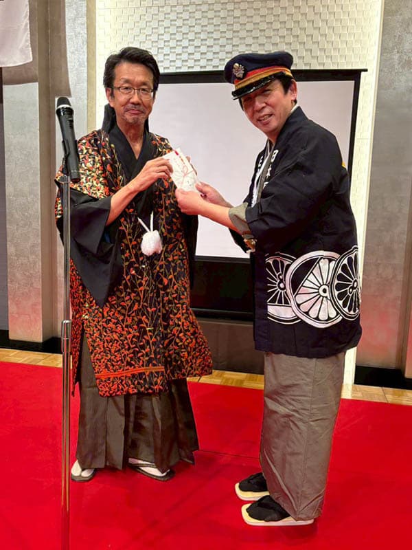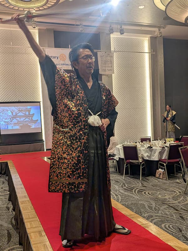 新年1回目の例会は、創立40周年記念行事として和服メンズ&レディーズグランプリを行いました。有志数名がファッションショーのようにランウエイを歩き、それを審査してグランプリを決めます。審査員は例会出席者全員です。世田谷RCの矢作千鶴子様のご協力により、華やかな着物に身を包んだ会員がファッションモデルに「なりきって」歩き、大いに盛り上がりました。最後に審査結果を発表。男女各1名がグランプリに選ばれた他、会長特別賞が贈られました。