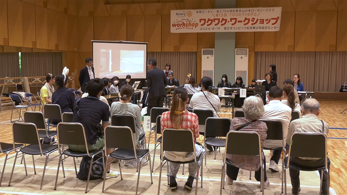 2024年6月15日(土)、国立オリンピック記念青少年総合センターで、「第13回Togethers “ワクワクワークショップ”」が開催されました。東京都の児童養護施設から約190名の子どもたちとボランティアを含めた総勢470名が参加しました。このイベントでは、ロータリアンが日頃の職業経験を活かし、11の職業体験ブースを設置しました。