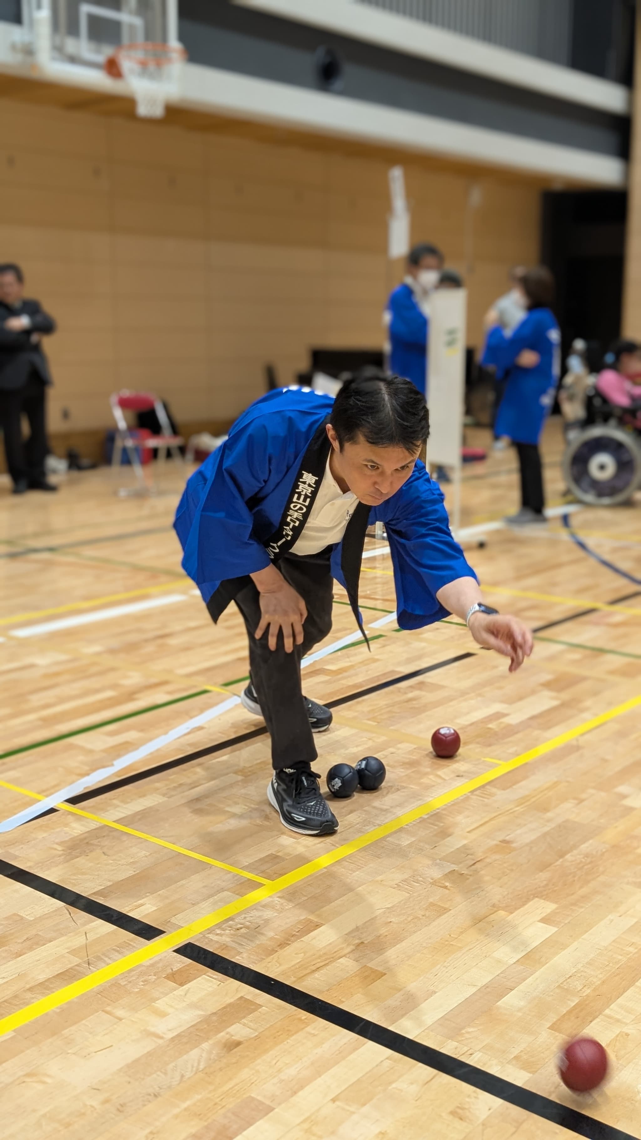 皆さんの投球時の視線は、まさに真剣そのもの。ベストショットが決まると、健常者、障がいをお持ち方区別無く満面の笑みが現れ、応援をしている観客の皆様も合わせて歓声があがりました。これこそ、ボッチャの魅力の一つ 「共に楽しむ」 が各コートでくり広がれていました。